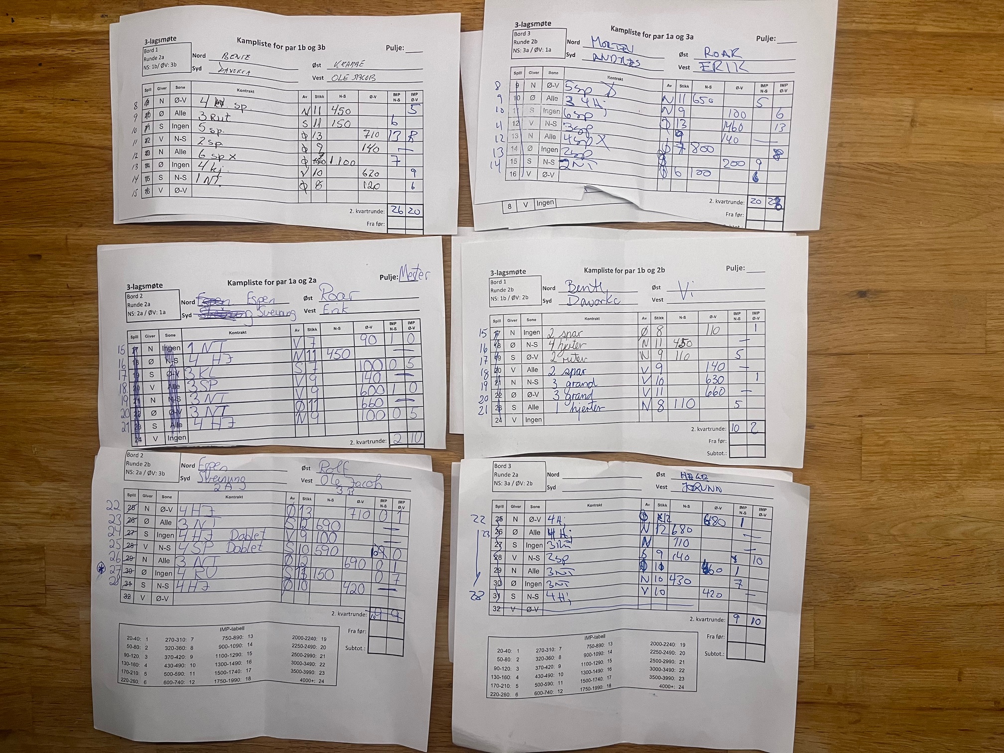 Etter fullført turnering linkes det til spill og resultater i denne nyheten. Sammenlagt etter 3 av 16 omganger finner du her. Bemerk at parenes 10 beste omgangsresultater teller i sammendraget