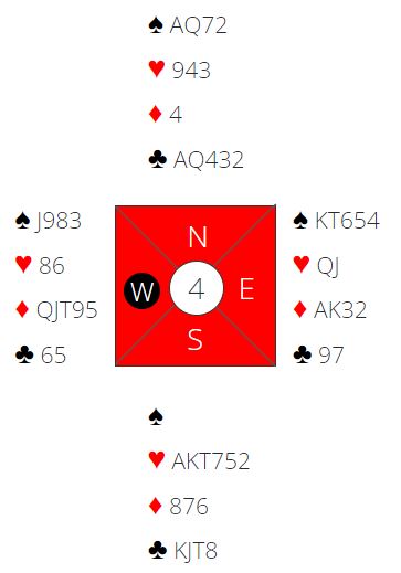 De som stoppet i 5 kløver fikk litt under middels da det var noen som spilte 3NT, og de fikk litt over middels. Noen få par var i 7NT og gikk bet.