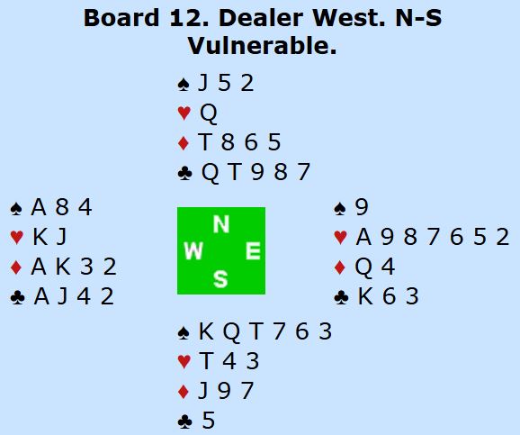 Et enkelt spill beviser ikke mye om hva som er best, men i dette tilfellet kom godt over en tredel av N/S-parene i 3NT som gikk helt galt, og de fleste av dem gjorde det etter åpning 1 kløver. Av dem som åpnet med 1 ruter klarte flere å finne den fine delkontrakten i ruter hvor det ble ni eller ti stikk, andre spilte delkontrakt i spar. Ingen fikk høyere score enn +140 på N/S.