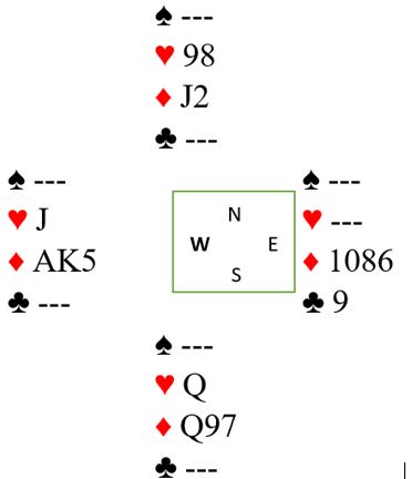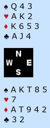 Etter dette hadde spillefører to sparstikk, tre hjerterstikk og fire ruterstikk, ni stikk totalt og +400.