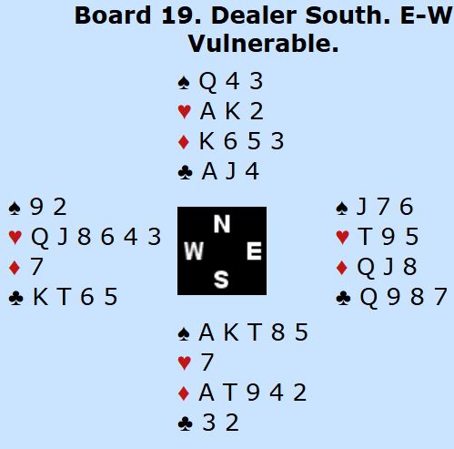 Ved en god del bord åpnet nord med 1 kløver, syd meldte hjerter (eller ruter) og nord sa 1NT, 12 (11)-14 før syd avsluttet meldingene med 3NT. Noen steder ble syd spillefører i 3NT for eksempel etter "kløverføringer".