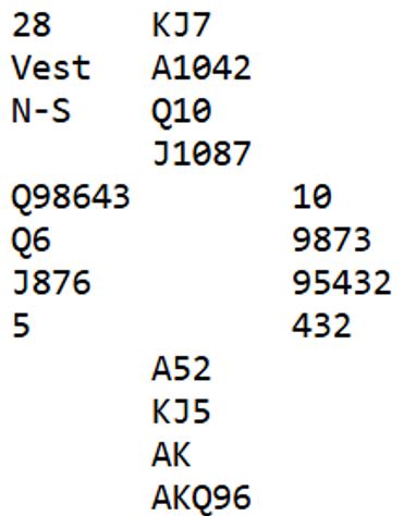 Fra parturneringen tar vi med et spill hvor vests avgjørelse i starten på meldingsforølpet fikk betydning. Ta vests kort og vurder selv: