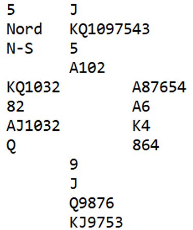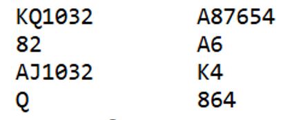 Trumfen viser seg å sitte 1-1. Nord har trolig åtte hjertere, åpningen på fire-trinnet var tross alt i ugunstig sone. Dermed har syd sannsynligvis ruterlengde. Hvis syd har firekorts ruter går det bra å stjele to rutere og få god den femte som en hjerter kan kastes på. Da blir det kun en kløvertaper. Men om ruteren sitter 5-1 går ikke det, i så fall må ruterfinessen tas. Det blir galt bare om nord har damen dobbel eller tredje i ruter.