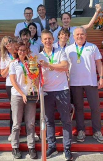 Vinnerlaget feirer den overbevisende seieren (foto: EBL)