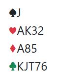 Så om det åpnes med 1 kløver som virker opplagt må det reverseres neste gang. Alternativet med akkurat denne fordelingen og kanskje litt mindre er å åpne med 1NT. Det er ikke ideelt med singel spar, men 1NT i åpning medfører noen fordeler det også.