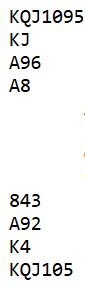 Hvis det starter slik har egentlig syd til en enkel 4NT - Key Card Blackwood. Nord viser tre nøkkelkort. Da behøver ikke syd tenke på å spørre om trumfdamen, for nord har jo fortalt at sparfargen er god nok. Men det mangler ett nøkkelkort, så syd må gi seg i lilleslem. Dermed blir kontrakten 6 spar? Eller...?
